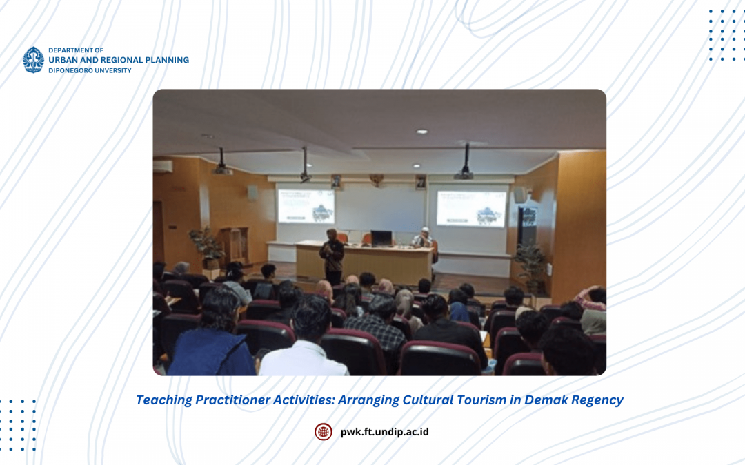 The Urban Design and Development Laboratory, Department of Urban and Regional Planning, Faculty of Engineering, Diponegoro University held an On-Campus Teaching Practitioner activity on April 24, 2024 at the Theater Room Building A. This On-Campus Teaching Practitioner activity is one of a series of activities of the 2024 Match Fund Program, a collaboration between the Department of Urban and Regional Planning and the Demak Regency Tourism Office. The theme of the Teaching Practitioner activities on campus is “Structuring the Demak Golden Triangle Cultural Tourism Area: Benefits for the Community and Regional Development”. This activity aims for students to gain knowledge directly from practitioners of government agencies.